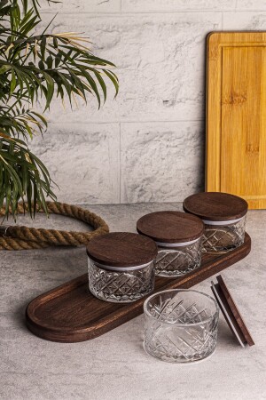 MNZ-Bella 10 قطعة صندوقا الخشبية فراغ الغطاء الزجاجي الإفطار متعدد الأغراض وعاء خفيفة الزجاجي 235ml
