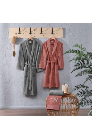 Lora 10 Parça Nakışlı Bornoz Seti Bornoz Bornoz Takımı Çeyiz Seti