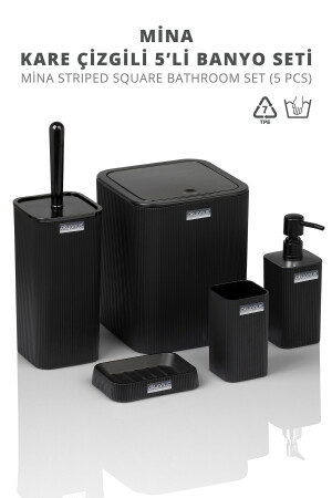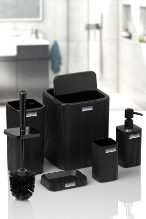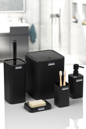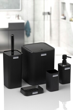 5 Parça Lenox Akrilik Bambu Banyo Seti Siyah