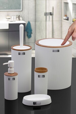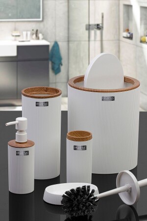 5 Parça Lucas Akrilik Bambu Banyo Seti Beyaz