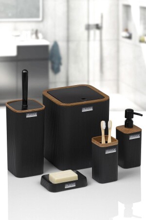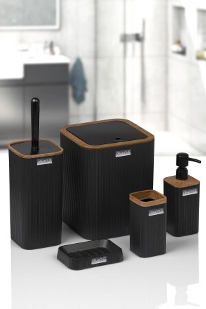 5 Parça Lenox Akrilik Bambu Banyo Seti Siyah