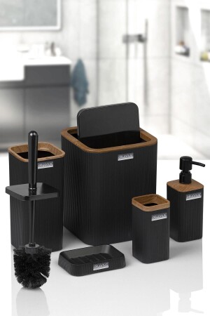 5 Parça Lucas Akrilik Bambu Banyo Seti Siyah