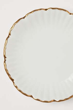 لوحة من الفورسلين MNZ-Mini. حوافها ذهبية وموجية، والجزء الداخلي من الحواف مغمورة. قطرها 10 سم.