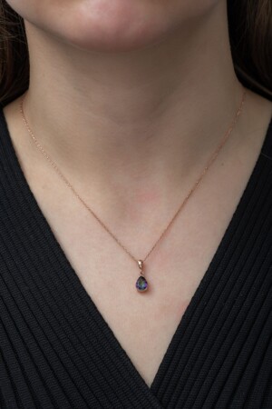 MNZ-Minimal Mystic Topaz Stone Drop قلادة فضية قلادة فضية 925 سبرلينغ فولاذ TRDYL907