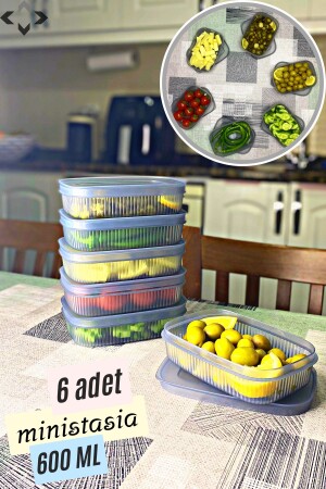 حاوية تخزين صغيرة من 6 حزمة من MNZ-Ministasia مع غطاء - الإفطار - حاوية الثلاجة 600 مل 6 قطع مناسبة للتواصل مع الطعام. لا