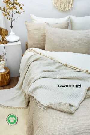 MNZ-Mink-ecru King حجم 4 طبقات المسلين 100% القطن بيكي/فراش