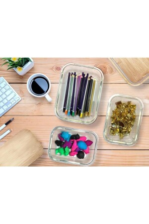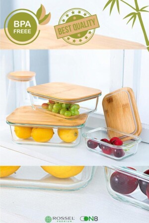 (MNZ-Rossel Premium Acrylic Mira) 3 قطع حاوية تخزين غطاء بامبو KRD-A003 3 صناديق تخزين بأبعاد 650-1000-1
