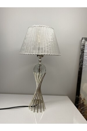 MNZ-Misbah Twirl Lampshade طاولة مصباح مع قطع زجاج بلور فضي لون مطلي، مصباح ظلّ ضوء تدور ظلّ الفضة قطع