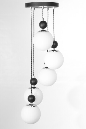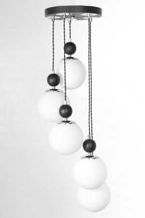 MNZ-Misket 5-piece Black Chrome White Glass Pendant Lamp قمرة شمعة TYC00806092618