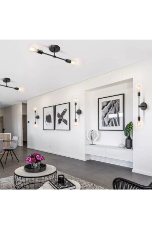 MNZ-Modern Cotto Zero to Ceiling ذراعين شمعة Matte Black E27 حامل مصباح burenze097