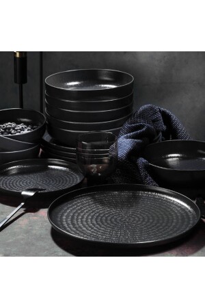 (MNZ-Matte) عشاء أسود / فطور مجموعة 30 قطعة لـ 6 أشخاص dmtaks202330