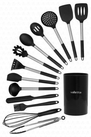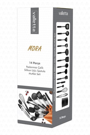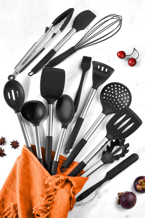 MNZ-Mora 14 قطعة من الفولاذ المقاوم للصدأ نحت السيليكون Spatula المطبخ مجموعة سوداء