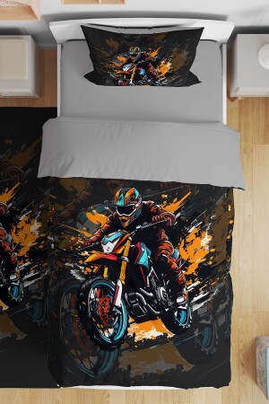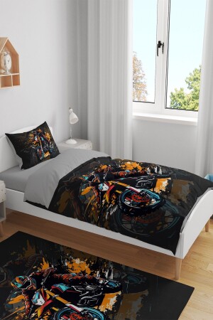 Rally Yarış Arabalı Desenli Mavi Çarşaflı 2 Yastık Kılıflı -Ranforce Tek Kişilik Nevresim Takımı