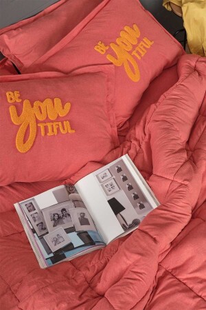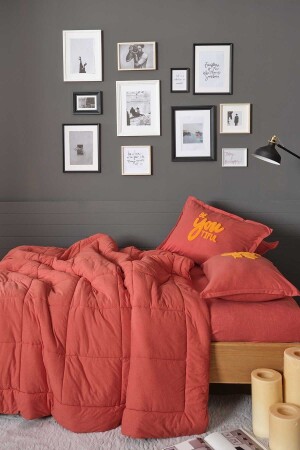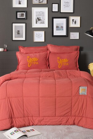 منىز-كاراكا المنزلي شعار القطن راحة مجموعة مرجانية واحدة محتويات اللوحة المطبقة (160 سم × 220 سم) ورقة مصممة (100 سم × 200 سم