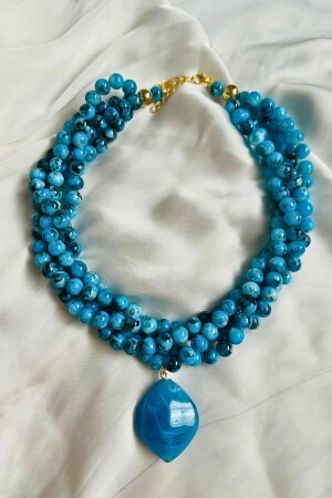 ملون: الأزرق الحجم: 40+5 سم الوزن: 30 جرام النموذج: قلادة للكرامل المواد: أكريليك محتويات الحزمة: قطعة واحدة