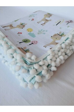 MNZ-Multi-Purpose Double Layer Muslin Blanket 100% قطن غطاء من الأقمشة (110*110) PiuminiMint نمط غازيل خضراء 100% قطن