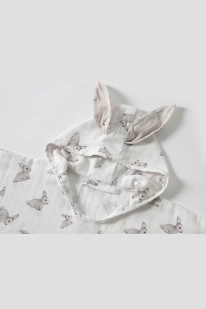 MNZ-Muslin Children's Poncho Age 2 اللبن المميز - نمط الأرنب الرمادي CAPE1001