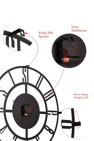 MNZ-Muyika Bunnela Metal Black Wall Clock 50x50cm Mds-50