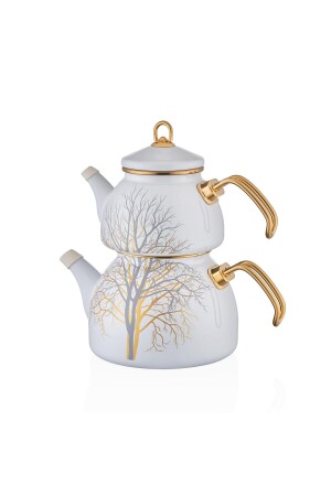 Nv10055 Porselen Demlikli Beyaz Emaye Çaydanlık Takımı
