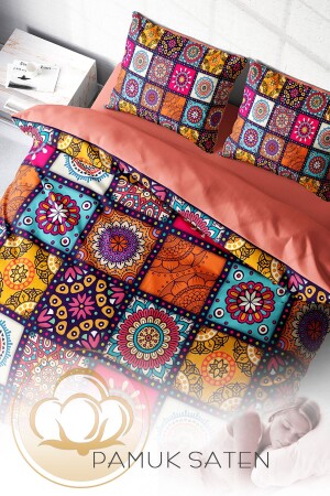 MNZ-MonoHome Nakkaş 3D القطن ساتين غطاء ملابس مزدوجة مجموعة، لمسة لطيفة نوم سلمي 200 سم x 220 سم - خاصة نسيج القطن ساتين