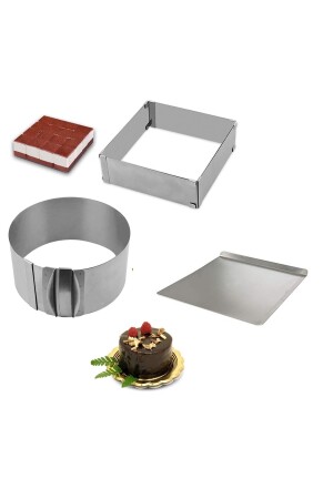 MNZ-Narkalıp مربع مستدير و قاعدة قابلة للتعديل كعكة قالب مجموعة من 3 YNK-005