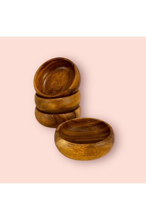 MNZ-Natural Acacia Round Snack & Jam Bowl 10 سم مجموعة من 2