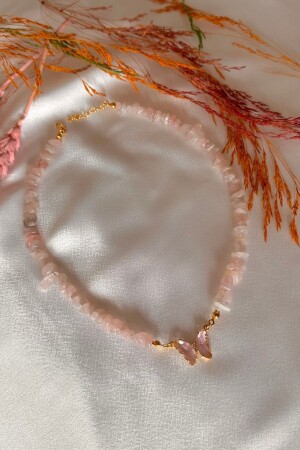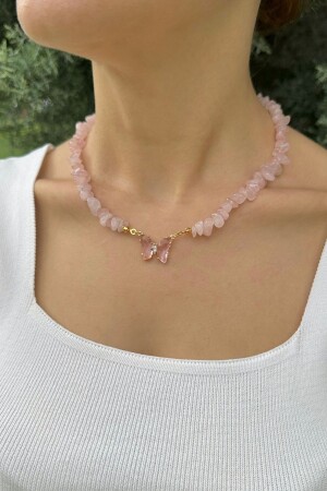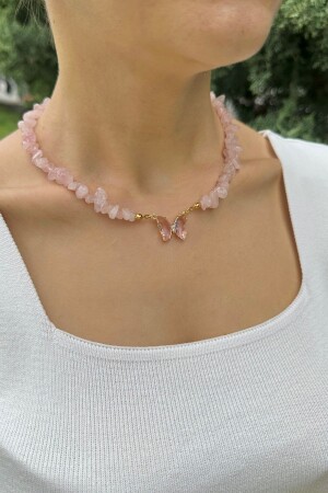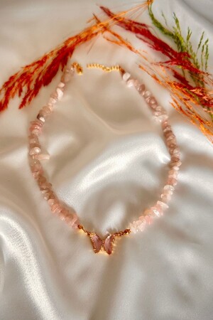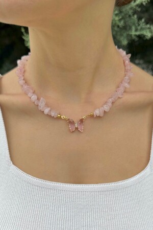 MNZ-Natural Cracked Pink Quartz Stone Glass ضفدع الفراشة