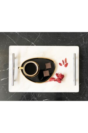 Lüx Kare Kelebek Aksesuarlı Paslanmaz Çelik 6’lı Gümüş Kahve, Çay, Dekoratif Sunum Servis Tepsisi MZKBK667