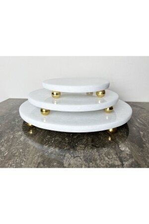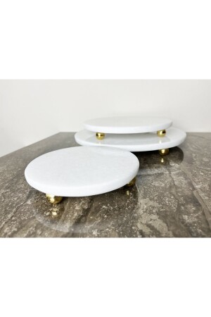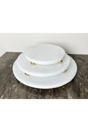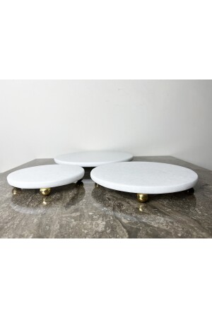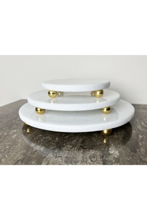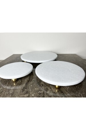 MNZ-Natural Plain White Marble Round 3 Piece عرض مجموعة ذهبية أعلى قدم برية بيضاء R3TRPURE