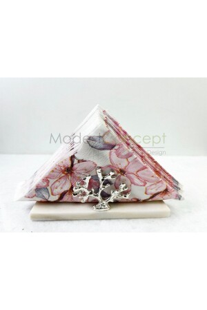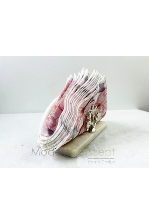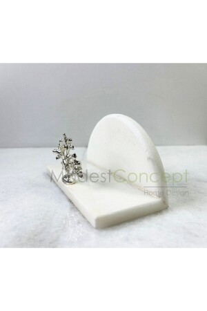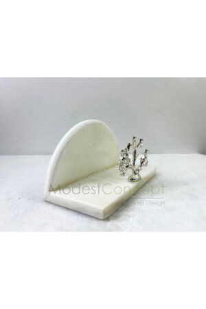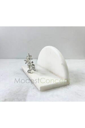 MNZ-Natural White Marble Napkin Holder الفضة المرجانية المزروعة نصف دائرة