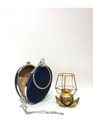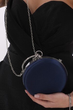 MNZ-Navy Blue Color Satin Fabric Stoned Bracelet Ring Dress Evening Portfolio Clutch Bag (المتوسط 15 سم)