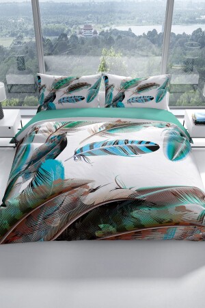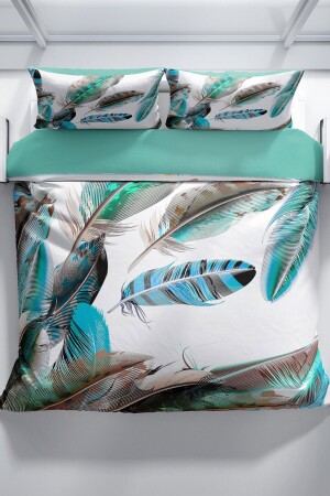 MNZ-PerlaSera New Feather 3D Cotton Satin Double Duvet Cover Set A Pleasant Touch A Peaceful Sleep 200 سم x 220 سم - ساترين القطن المنسوج الخاص - الطباعة