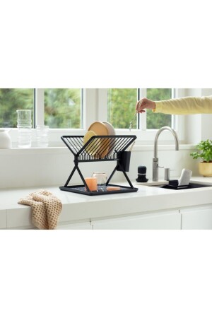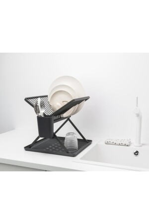 MNZ-New Foldable Dish Rack (مرفق الأطباق القابل للطي) أسود الأبيض (Evrekala) الجديد 139406