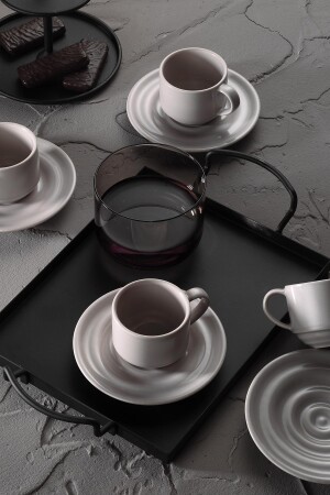 Sunum Tabaklı- Kahve Yanı Bardaklı 18 Parça 6 Kişilik Kahve Fincan Takımı- Seti
