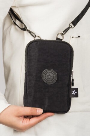 (MNZ-Newishpolo) النساء السوداء المقاومة للماء (Crincle) الهاتف المصغرى المحفظة (Nicket) الخزينة (Cross Shoulder Waist Bag