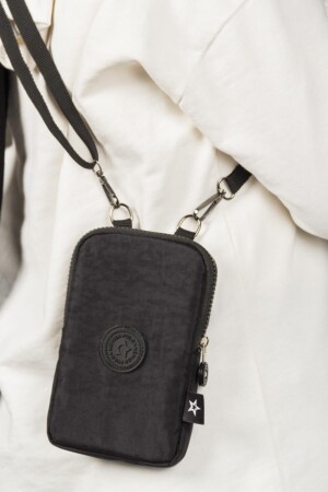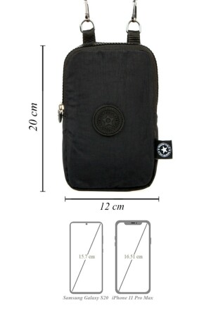 Unisex Siyah Keten Kumaş Telefon Bölmeli Çapraz Askılı Omuz Ve Bel Çantası Günlük Çanta