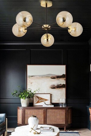 Pare Model Modern Spor Siyah 4'lu Glop Füme Camlı Avize