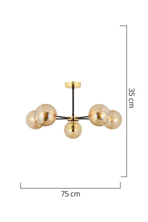 مقاس منتجنا: عرض: 75 سم، طول: 30 سم. منتجنا لديه 5 فتحات للكبوب. نوع حامل المنتج هو E27 و لديه القدرة على استخدام الكبوبات LED