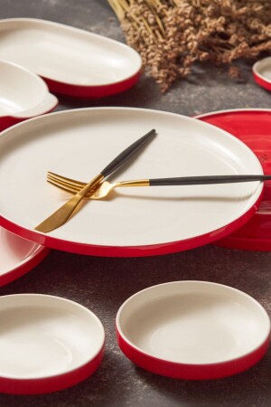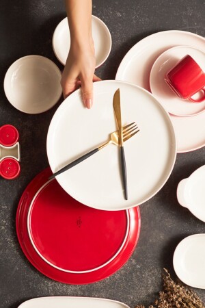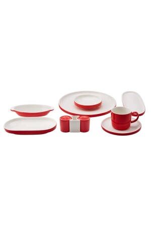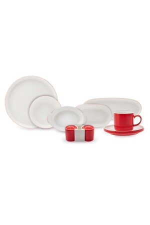MNZ-Nordic Red 27 Piece Porcelain Breakfast/Serving Set لـ 6 أشخاص
