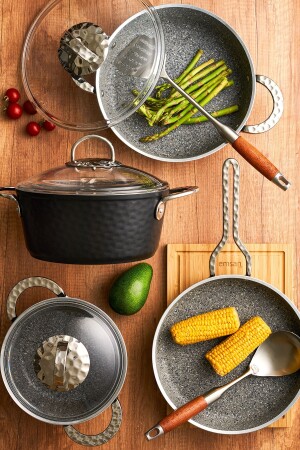 مـنـز مـايا 7 قطع غرانيت طباخات طباخات طبيعات ذهبية