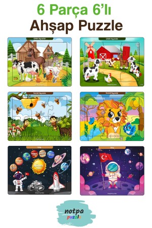 MNZ-Notpa التعليمية والتدريبية الخشب 6 قطعة 13x17 اللغز الملونة مجموعة 6 للأطفال - 603