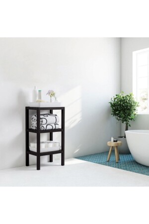 MNZ-Ombeg Vesken (سطح) ديكوراتية 3 طبقات بلاستيكية متعددة الأغراض منظمة الحمام الزهرة وعاء الكتب رف الأسود 3 طبقات om