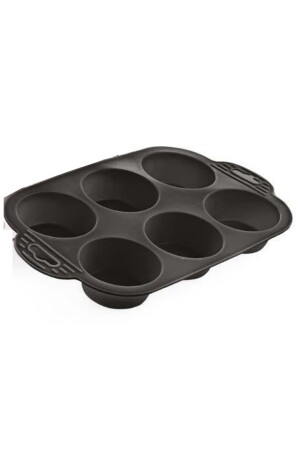 MNZ-One Piece Anthracite 6-piece سليكوني كعكة صغيرية قالب - قالب موفين 6-قطعة قالب كعكة قلبي قالب 24x16cm 6-قطعة كع