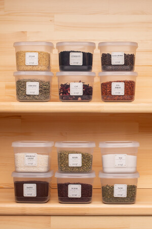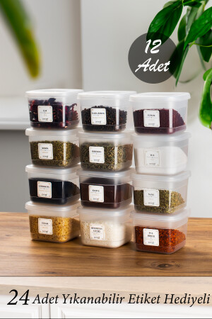 MNZ-Org-430 12 طلاء مع علامة وعاء العقاقير - حاوية تخزين النباتات - حاوية تخزين الطعام مجموعة شفافة 600 مل KARMA0400