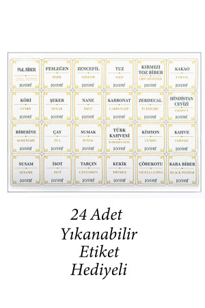 12'li Kapağı Kendinden Kaşıklı Ve Etiketli Baharatlık Seti 300 ml Gold Etiketli Cam Baharat Takımı