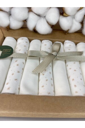 اسم المنتج من طراز MNZ CARAMELL مسحات الفم المربوطة بالكريم والقماش والقماش المربوطة بنمط 7 قطع 100% عضوية GOTS المعتمد