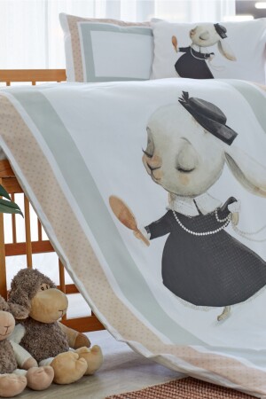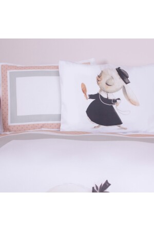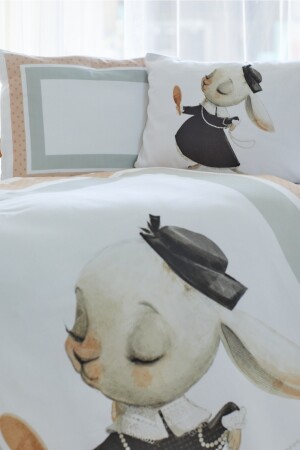 MNZ-Organic Printed Cotton Satin Baby Duvet Cover Set - موضوع الأرنب الوردي ANDC21002