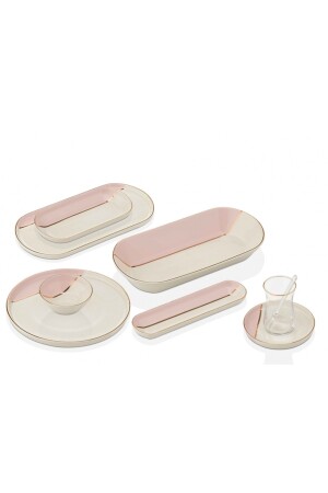 64 Parça 12 Kişilik Platin Modern Krem Kahvaltı Takımı