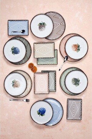 منز-بورلاند أورتانكا مجموعة 18 قطعة طعام البورسلين والفطور ل 6 أشخاص. مجموعة حلوى ملونة، إجمالا 18 قطعة في 6 ألوان مختلفة
