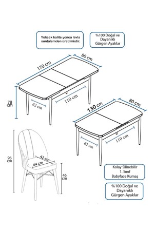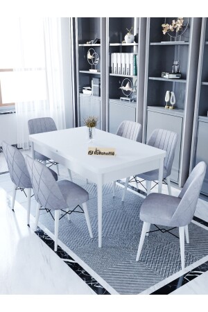 MNZ-Ovo Aytaşı 80x130 سم طاولة تناول الطعام الممتدة - مجموعة كرسي الطاولة لـ 6 أشخاص - رمادي